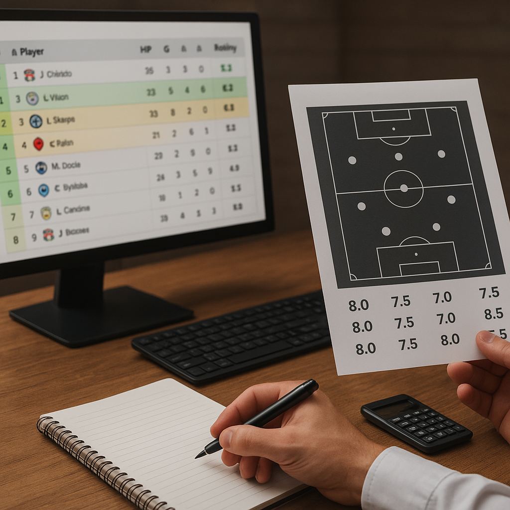 - Nadawanie wag – określenie, które elementy gry są najbardziej wartościowe, np. gole, asysty czy interwencje bramkarskie.